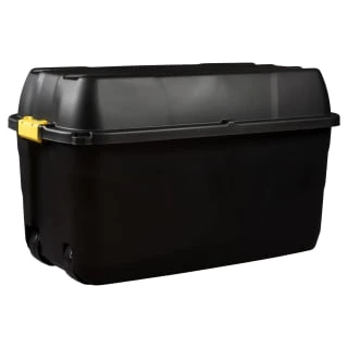 Super strong and brilliantly robust design, it has sturdy wheels for easy manoeuvrability and a clip-on lid with tough clips to keep things secure.